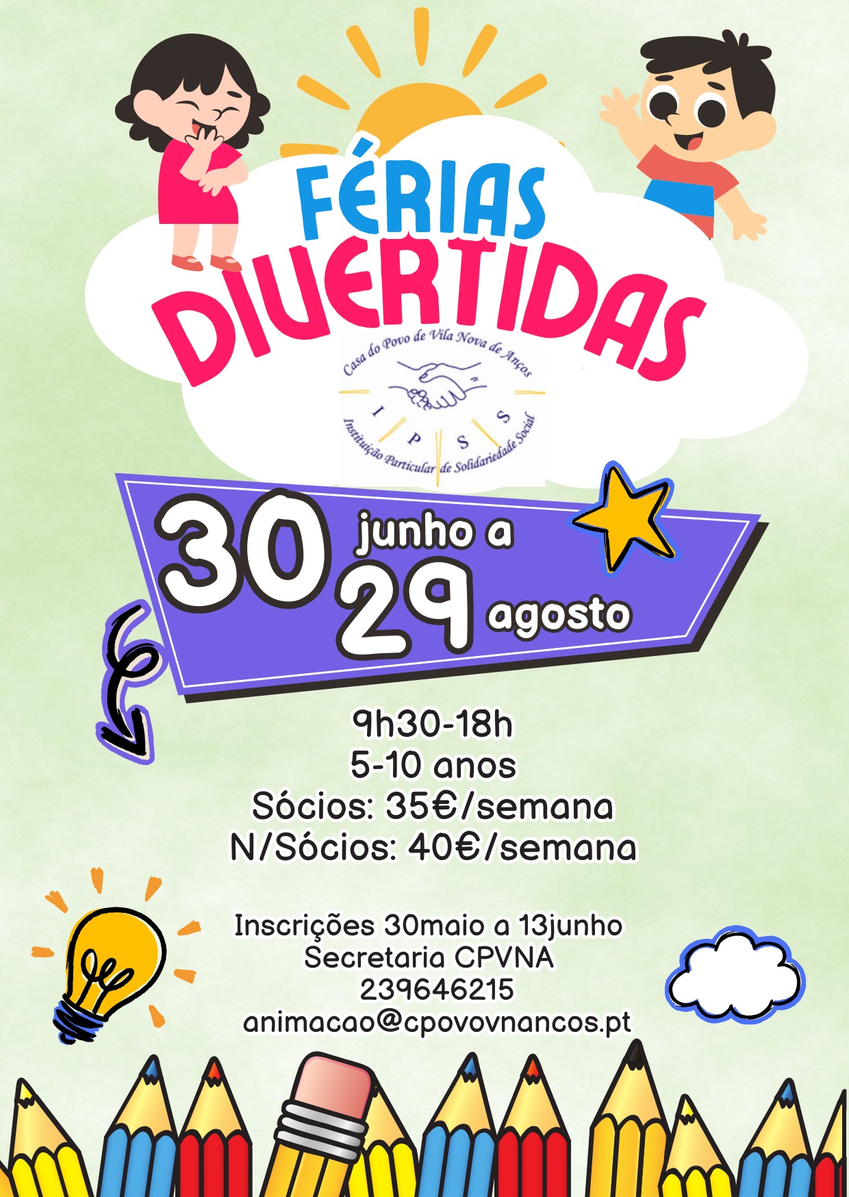 As inscrições poderão ser feitas nos serviços administrativos da CPVNA ou através do e-mail animacao@cpovovnancos.pt